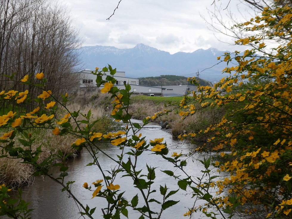 川沿いに咲く、鮮やかな黄色の「ヤマブキ」が